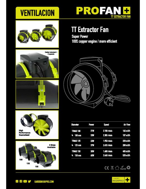 Descripción | 100% motor cobre para máxima eficiencia, 2 velocidades / 1 metro cable + toma incluida |